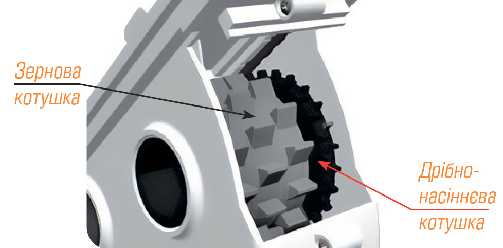 Зерновий апарат має трирівневу зубчасту котушку, яка забезпечує безперебійну подачу посівного матеріалу, а також забезпечує рівномірніший розподіл насіння, що впливає на більш точний висів.